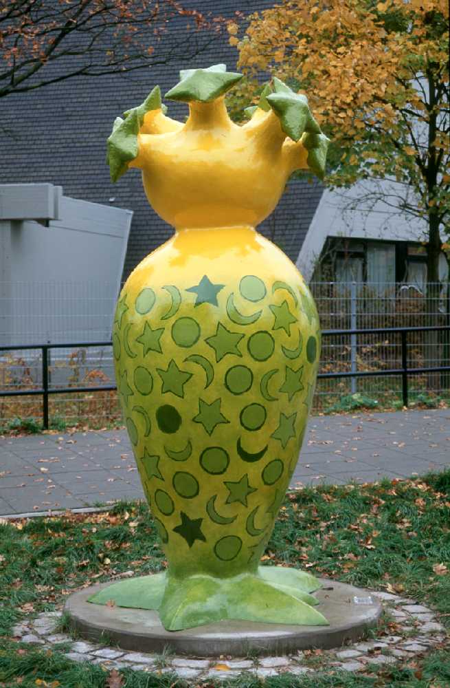 The sculpture reminds of a flower vase or a fanciful tree. It is positioned in the district “Blockdiek” in Bremen and spreads a happy and colourful atmosphere The “Mühlheimer Bouquet”, according to common parlance, was developed in the course of an initiative of the area’s residents.