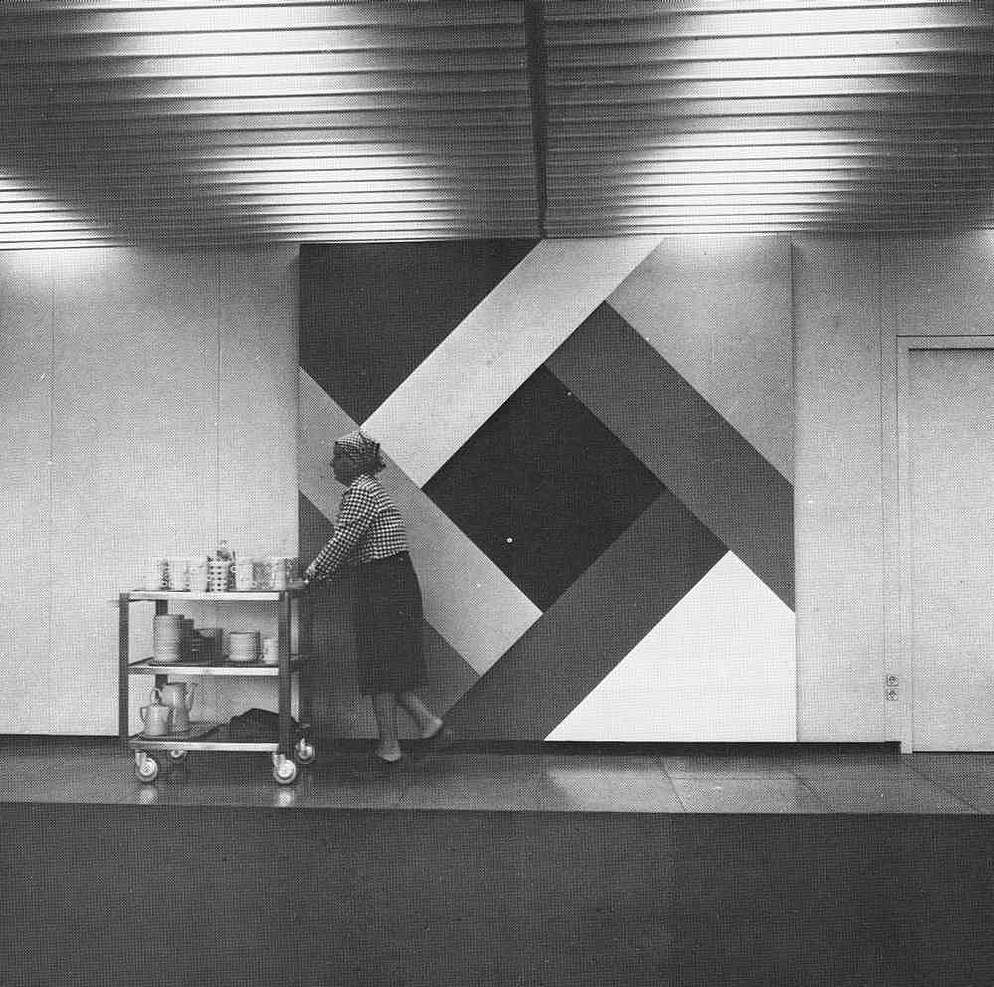 3 Tafelbilder, 2,4 m x 2,5 m; 3,88 m x 2,56 m; 1,83 m x 1,83 m; 1 Objekt (Raumteiler), farbiges Plexiglas, geklebt, 2 m x 2 m nicht mehr Ort