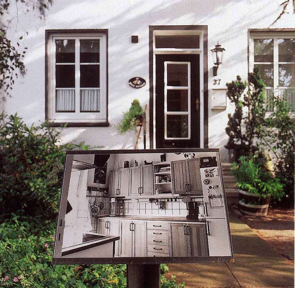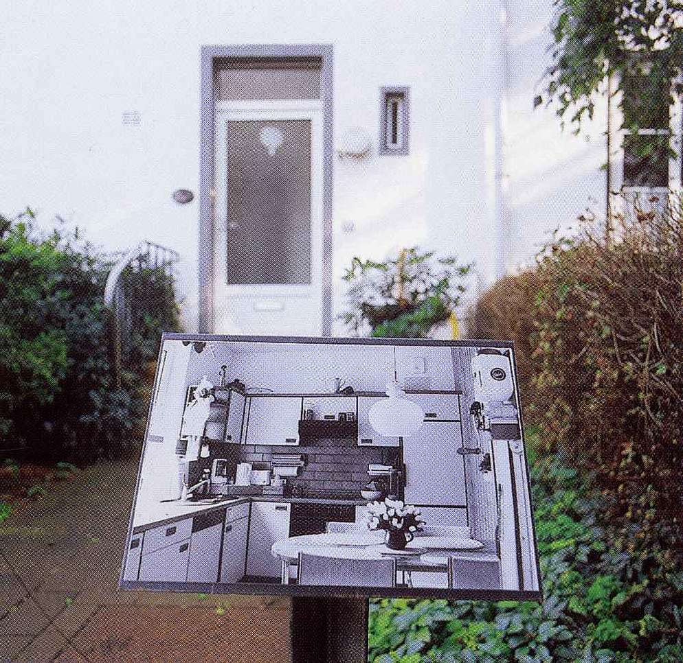 Artist Anke Friedhoff exhibited five black and white photographies in the front yards at 33, 35, 37, 39, 41, Buxtorffstraße. The photos show the kitchens of the house residents.