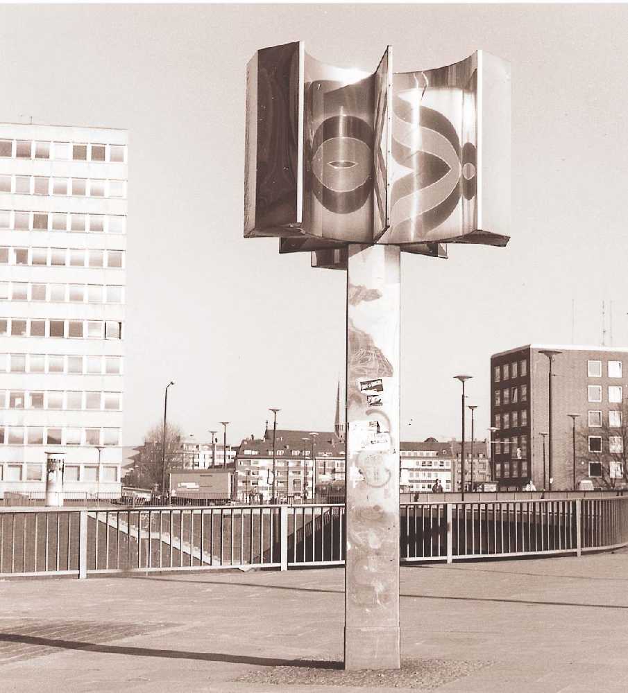 Die Spiegelplastik besteht aus sechs Hohlspiegelelementen, in die jeweils eine Bildfläche integriert ist. Die darauf erscheinenden Bildmotive werden je nachdem, wie der Betrachter sich bewegt, konkav verändert. Es entstehen stets neue Bildeindrücke.